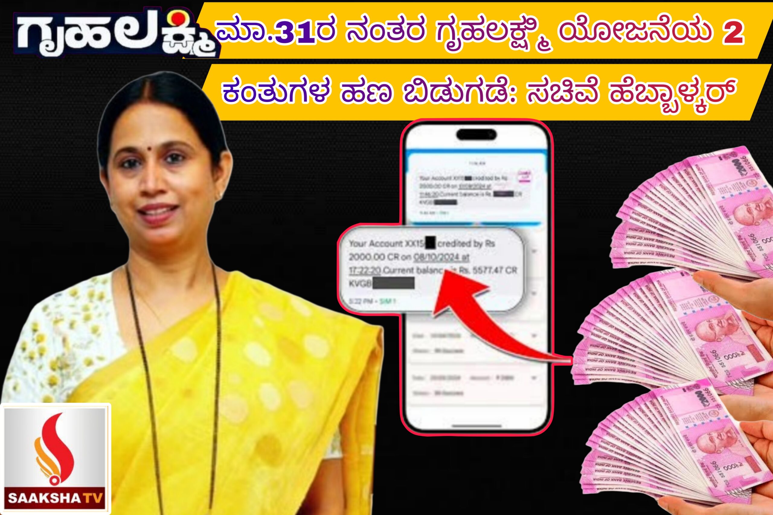 ಮಾ.31ರ ನಂತರ ಗೃಹಲಕ್ಷ್ಮಿ ಯೋಜನೆಯ 2 ಕಂತುಗಳ ಹಣ ಬಿಡುಗಡೆ ಮಾಡಲಾಗುತ್ತದೆ ಎಂದು ಮಹಿಳಾ ಮತ್ತು ಮಕ್ಕಳ ಅಭಿವೃದ್ಧಿ ಸಚಿವೆ ಲಕ್ಷ್ಮೀ ಹೆಬ್ಬಾಳ್ಕರ್ ಅವರು ಘೋಷಿಸಿದ್ದಾರೆ. ಈ ಕುರಿತು ಅವರು ವಿವಿಧ ಮಾಧ್ಯಮಗಳಿಗೆ ನೀಡಿದ ಮಾಹಿತಿಯ ಪ್ರಕಾರ, ಈ ಯೋಜನೆಯ ಬಾಕಿ ಉಳಿದ ಎರಡು ತಿಂಗಳ ಹಣವನ್ನು ಫಲಾನುಭವಿಗಳ ಖಾತೆಗೆ ಜಮೆ ಮಾಡಲು ಸರ್ಕಾರ ಸಿದ್ಧತೆ ನಡೆಸುತ್ತಿದೆ.