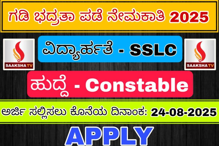 ಅರ್ಜಿ ಸಲ್ಲಿಸಲು ಕೊನೆಯ ದಿನಾಂಕ: 24-08-2025
