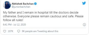 ಅಭಿಷೇಕ್, ಅಮಿತಾಬ್ ಬಚ್ಚನ್ ಆರೋಗ್ಯ ಸ್ಥಿರ..!