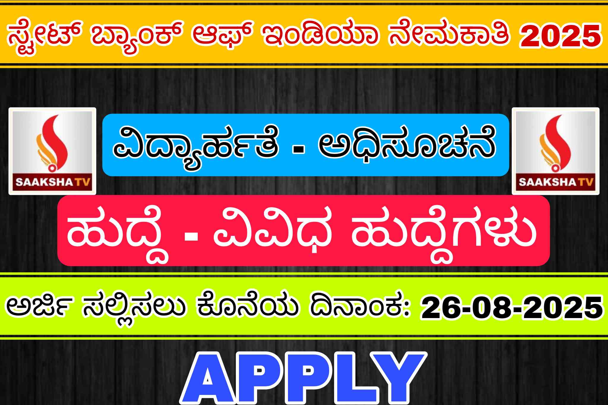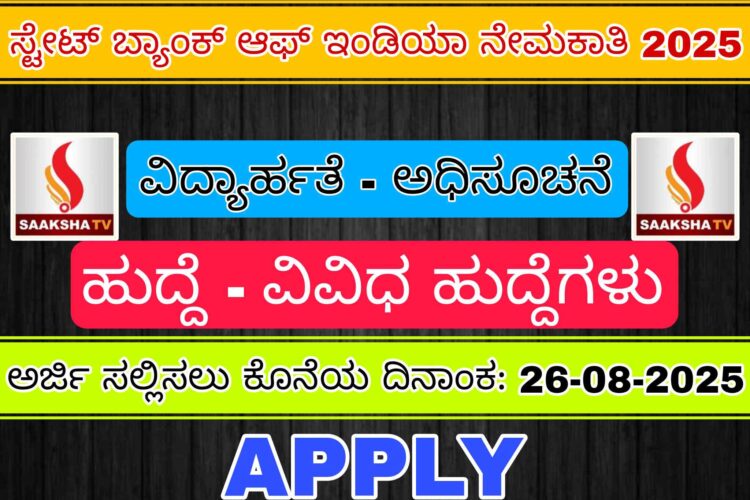 ಅರ್ಜಿ ಸಲ್ಲಿಸಲು ಕೊನೆಯ ದಿನಾಂಕ : ಆಗಸ್ಟ್ 26, 2025
