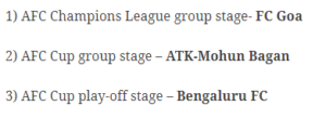 2021ರ ಏಷ್ಯನ್ ಫುಟ್ ಬಾಲ್ ಕಾನ್ಫೆಡೇಶನ್ (ಎಎಫ್ಸಿ) ಟೂರ್ನಿಯಲ್ಲಿ ಭಾರತದ ಮೂರು ಫುಟ್ ಬಾಲ್ ತಂಡಗಳು ಭಾಗವಹಿಸುವ ಅರ್ಹತೆಯನ್ನು ಪಡೆದುಕೊಂಡಿವೆ. ಎಟಿಕೆ ಮೋಹನ್ ಬಗನ್, ಗೋವಾ ಫುಟ್ ಬಾಲ್ ಕ್ಲಬ್ ಮತ್ತು ನಮ್ಮ ನಾಡಿನ ಹೆಮ್ಮೆಯ ಬೆಂಗಳೂರು ಫುಟ್ ಬಾಲ್ ಕ್ಲಬ್ ತಂಡಗಳು ಭಾಗವಹಿಸಲಿವೆ.