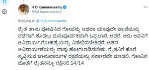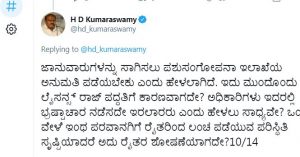 12. ಗೋವುಗಳು ಹೇಗೆ ನಮಗೆ ಪೂಜನೀಯವೋ, ರೈತನೂ ಪೂಜನೀಯವೇ. ಗೋ ಹತ್ಯೆಯನ್ನು ತಡೆಯುವ ನಮ್ಮ ಪ್ರಯತ್ನದಲ್ಲಿ ರೈತನನ್ನು ಶೋಷಿಸುವ ವ್ಯವಸ್ಥೆಗೆ ದೂಡುವುದು ಯಾವ ನ್ಯಾಯ? ಕಾಯ್ದೆಯು ರೈತನ್ನು ಸಂಕಷ್ಟಕ್ಕೆ ದೂಡಬಾರದು ಎಂಬುದಷ್ಟೇ ನನ್ನ ಆಶಯ. ಜೆಡಿಎಸ್ಗೆ ಈ ವಿಚಾರದಲ್ಲಿ ಯಾವ ಮತಬ್ಯಾಂಕ್ನ ಓಲೈಕೆಯೂ ಬೇಕಿಲ್ಲ. ರೈತನ ಹಿತ ರಕ್ಷಣೆಯಾದರೆ ಸಾಕು.