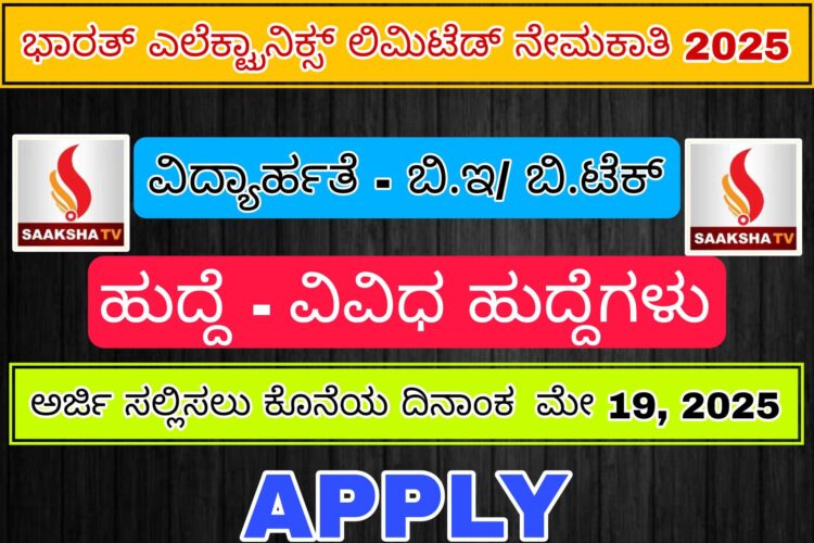 BEL Senior Engineer Recruitment 2025 : ಭಾರತ್ ಎಲೆಕ್ಟ್ರಾನಿಕ್ಸ್ ಲಿಮಿಟೆಡ್ ನಲ್ಲಿ ಅಗತ್ಯವಿರುವ ಸೀನಿಯರ್ ಇಂಜಿನಿಯರ್ ಹುದ್ದೆಗಳ ಭರ್ತಿಗೆ ಅರ್ಹ ಹಾಗೂ ಆಸಕ್ತ ಅಭ್ಯರ್ಥಿಗಳಿಂದ ಅರ್ಜಿಗಳನ್ನು ಆಹ್ವಾನಿಸಲಾಗಿದೆ.