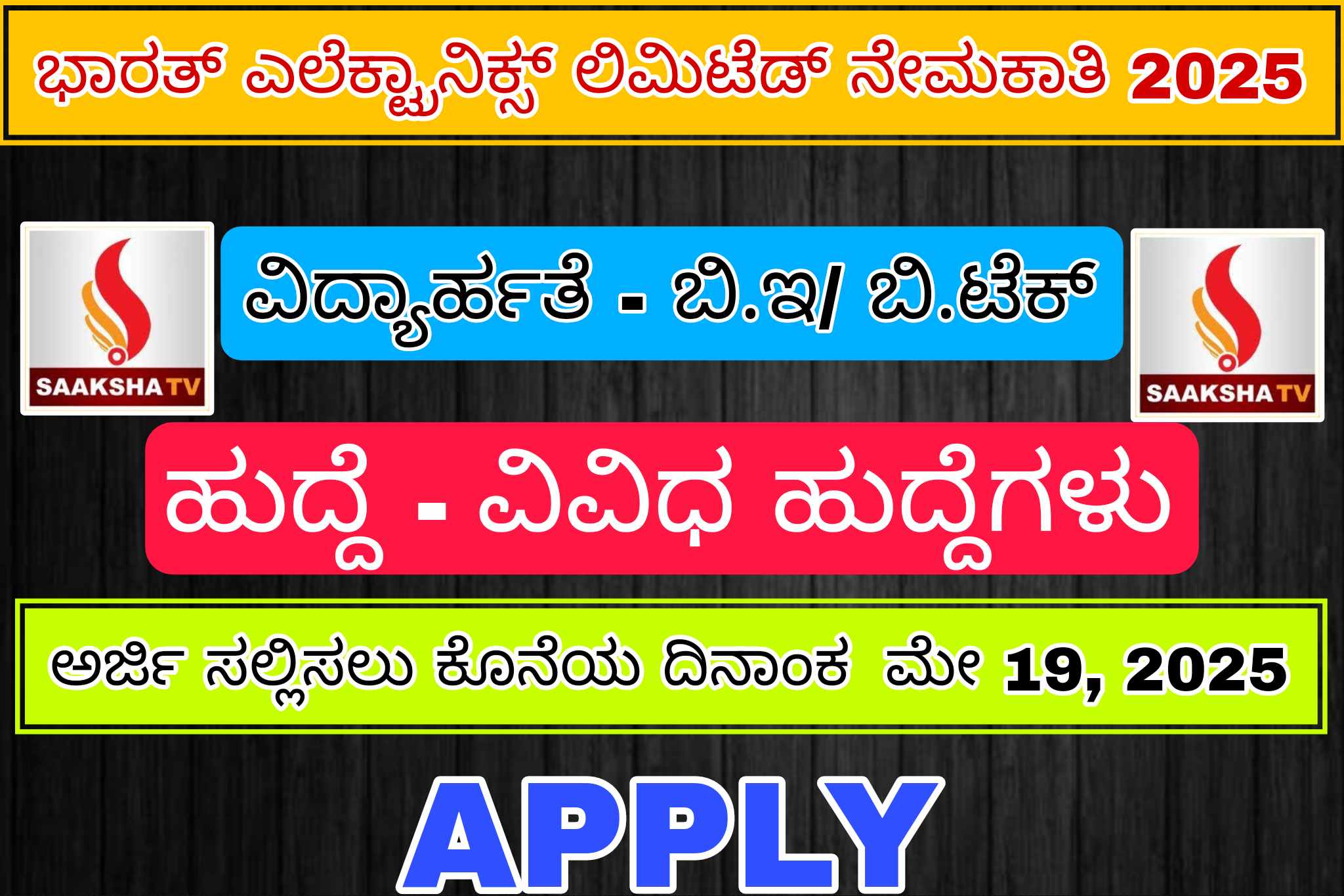 ಅರ್ಜಿ ಸಲ್ಲಿಕೆಗೆ ಕೊನೆಯ ದಿನಾಂಕ : ಮೇ 19, 2025