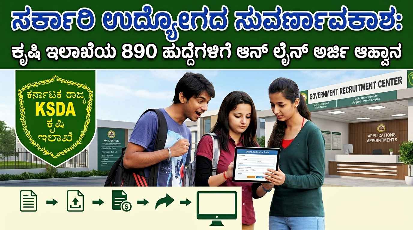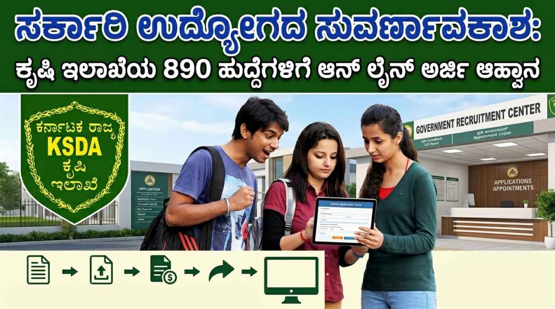 ರಾಜ್ಯದ ಸರ್ಕಾರಿ ಕೆಲಸದ ಆಕಾಂಕ್ಷಿಗಳಿಗೆ ಇಲ್ಲಿದೆ ಒಂದು ಸುವರ್ಣಾವಕಾಶ. ಕರ್ನಾಟಕ ಕೃಷಿ ಇಲಾಖೆಯಲ್ಲಿ ಖಾಲಿ ಇರುವ ಬರೋಬ್ಬರಿ 890 ಹುದ್ದೆಗಳ ನೇಮಕಾತಿಗೆ ಅಧಿಕೃತವಾಗಿ ಚಾಲನೆ ಸಿಕ್ಕಿದೆ. ಕರ್ನಾಟಕ ಪರೀಕ್ಷಾ ಪ್ರಾಧಿಕಾರವು ಈ ನೇಮಕಾತಿ ಪ್ರಕ್ರಿಯೆಯನ್ನು ನಡೆಸುತ್ತಿದ್ದು, ಅರ್ಹ ಮತ್ತು ಆಸಕ್ತ ಅಭ್ಯರ್ಥಿಗಳಿಂದ ಆನ್ ಲೈನ್ ಮೂಲಕ ಅರ್ಜಿಗಳನ್ನು ಆಹ್ವಾನಿಸಲಾಗಿದೆ.
