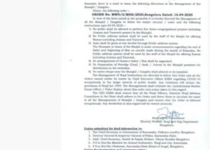 • ರಂಜಾನ್ ನಮಾಜ್ ಹೆಸರಿನಲ್ಲಿ ಗುಂಪು ಬೇಡ. ಇಫ್ತಿಯಾರ್ ಕೂಟ ನಡೆಸಬಾರದು.
