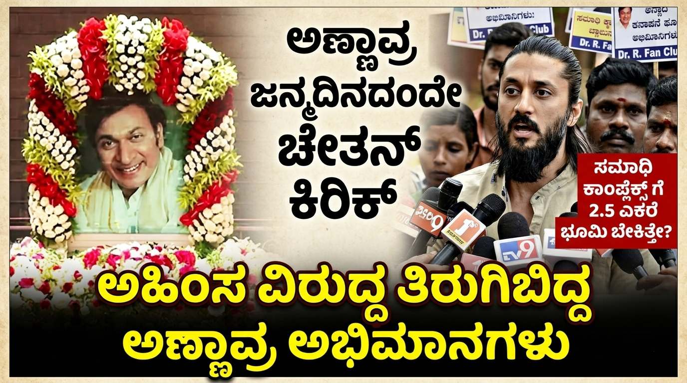 ಅಣ್ಣಾವ್ರ ಜನ್ಮದಿನದಂದೇ ಚೇತನ್ ಕಿರಿಕ್ : ಸಮಾಧಿ ಕಾಂಪ್ಲೆಕ್ಸ್ ಗೆ 2.5 ಎಕರೆ ಭೂಮಿ ಬೇಕಿತ್ತೇ ; ಅಹಿಂಸ ವಿರುದ್ಧ ತಿರುಗಿಬಿದ್ದ ಅಣ್ಣಾವ್ರ ಅಭಿಮಾನಿಗಳು