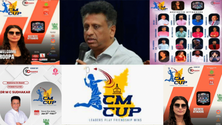 ಬೆಂಗಳೂರು: ರಾಜ್ಯದ ಪ್ರತಿಷ್ಠಿತ ಕ್ರೀಡಾಕೂಟಗಳಲ್ಲಿ ಒಂದಾದ ಸಿಎಂ ಕಪ್ 2026ರ ಶಟಲ್ ಬ್ಯಾಡ್ಮಿಂಟನ್ ಪಂದ್ಯಾವಳಿಯ ಫೈನಲ್ ಪಂದ್ಯಗಳಿಗೆ ವೇದಿಕೆ ಸಜ್ಜಾಗಿದೆ. ಫೆಬ್ರವರಿ 21 ಮತ್ತು 22 ರಂದು ನಡೆಯಲಿರುವ ಈ ಮಹತ್ವದ ಕ್ರೀಡಾಕೂಟಕ್ಕಾಗಿ 9 ಡ್ರೀಮ್ಸ್ ಸಂಸ್ಥೆ ಭರ್ಜರಿ ತಯಾರಿ ನಡೆಸಿದೆ. ಈ ಬಾರಿ ಕ್ರೀಡಾಂಗಣದಲ್ಲಿ ಸಂಚಲನ ಮೂಡಿಸಲು ಸಜ್ಜಾಗಿರುವ ಪ್ರಮುಖ ತಂಡಗಳಲ್ಲಿ ಎಸ್ಥೇಟಿಕ್ ಅಟ್ಯಾಕರ್ಸ್ ಕೂಡ ಒಂದು. ವಿಶೇಷವೆಂದರೆ, ಈ ತಂಡದ ನೇತೃತ್ವವನ್ನು ವಹಿಸಿರುವುದು ರಾಜ್ಯದ ಉನ್ನತ ಶಿಕ್ಷಣ ಸಚಿವರಾದ ಡಾ. ಎಂ.ಸಿ. ಸುಧಾಕರ್ ಅವರು.