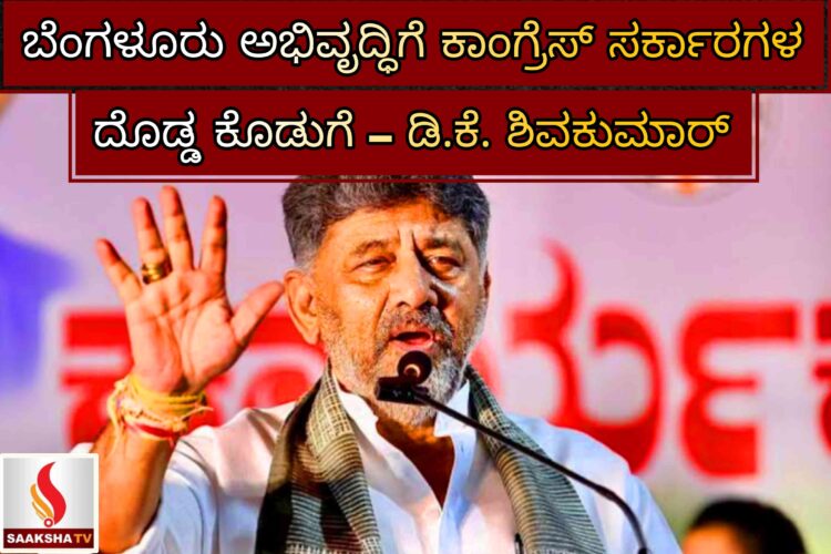 ಬೆಂಗಳೂರಿನ ಸಮಗ್ರ ಅಭಿವೃದ್ಧಿಯಲ್ಲಿ ಕಾಂಗ್ರೆಸ್ ಸರ್ಕಾರಗಳ ಪಾತ್ರ ಮಹತ್ತರವಾಗಿದೆ ಎಂದು ಉಪಮುಖ್ಯಮಂತ್ರಿ ಡಿ.ಕೆ. ಶಿವಕುಮಾರ್ ತಿಳಿಸಿದ್ದಾರೆ. ಬೇರೆ ಯಾವುದೇ ಪಕ್ಷದ ಸರ್ಕಾರಗಳಿಗಿಂತಲೂ ಬೆಂಗಳೂರು ಅಭಿವೃದ್ಧಿಗೆ ನಮ್ಮದೇ ಹೆಚ್ಚಿನ ಕೊಡುಗೆ, ಎಂದು ಅವರು ಉಲ್ಲೇಖಿಸಿದ್ದಾರೆ.