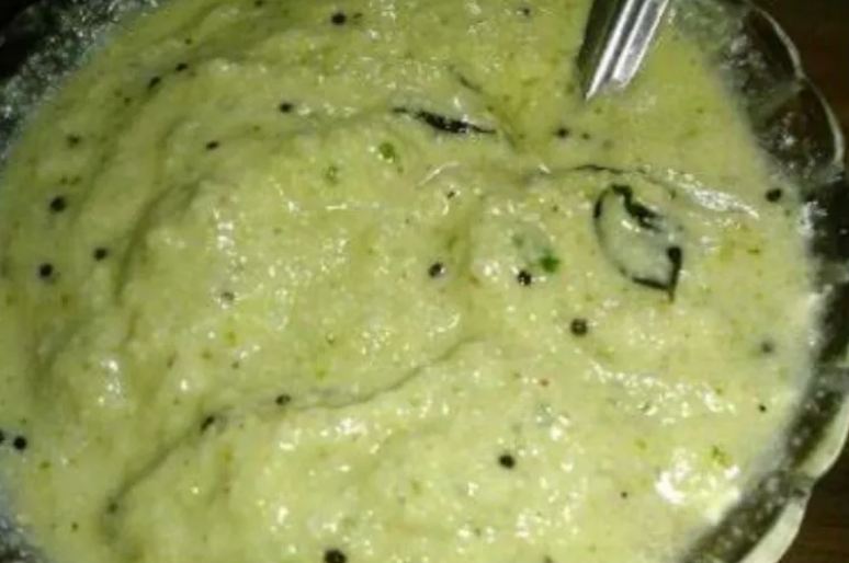 ಮಾವಿನ ಕಾಯಿಯ ಸಿಪ್ಪೆ ತೆಗೆದು ಸಣ್ಣಗೆ ಹೆಚ್ಚಿ. ಅದಕ್ಕೆ ತುರಿದ ತೆಂಗಿನಕಾಯಿ ಶುಂಠಿ ಬೆಳ್ಳುಳ್ಳಿ, ಕತ್ತರಿಸಿದ ಈರುಳ್ಳಿ, ಹಸಿರು ಮೆಣಸಿನಕಾಯಿ ಉಪ್ಪು ಸೇರಿಸಿ. (ಮಾವಿನ ಹುಳಿಗೆ ಅನುಗುಣವಾಗಿ ಮೆಣಸಿನಕಾಯಿಗಳನ್ನು ಬಳಸಿ).