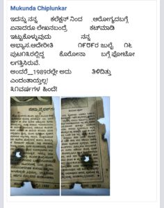 ಆರೋಗ್ಯದ ಬಗ್ಗೆ ಲೇಖನ ಬಂದಾಗ ಆ ಲೇಖನಗಳನ್ನು ಜೋಪಾನವಾಗಿ ಸಂಗ್ರಹಿಸಿಡುವ ಹವ್ಯಾಸವುಳ್ಳ ಮುಕುಂದ ಚಿಂಪ್ಲೂಂಕರ್ ಎನ್ನುವವರು 31 ವರ್ಷಗಳ ಹಿಂದೆ ತಾವು ಸಂಗ್ರಹಿಸಿದ ಕೊರೋನಾ ವೈರಸ್ ಕುರಿತಾದ ಮಾಹಿತಿಯ ಲೇಖನವನ್ನು ತಮ್ಮ ಫೇಸ್ ಬುಕ್ ನಲ್ಲಿ ಹಂಚಿಕೊಂಡಿದ್ದು, ಆದೀಗ ಸಾಮಾಜಿಕ ಜಾಲತಾಣದಲ್ಲಿ ವೈರಲ್ ಆಗುತ್ತಿದೆ.