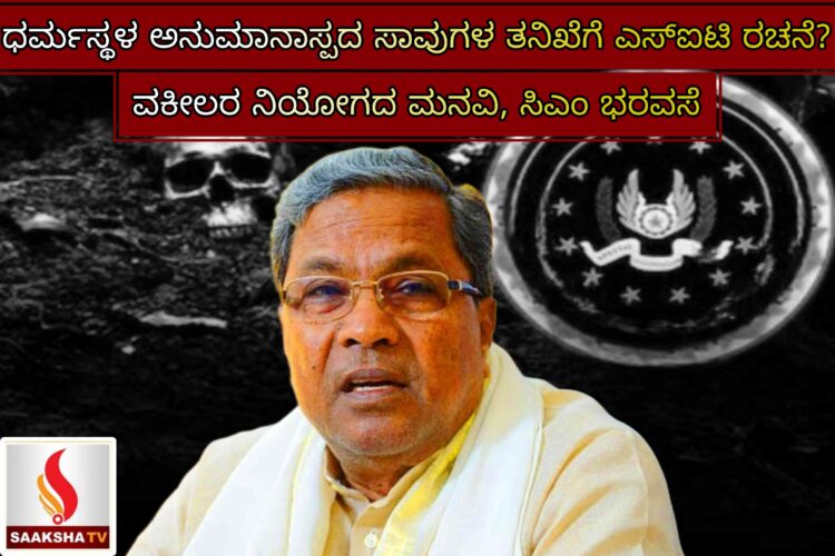 ಧರ್ಮಸ್ಥಳದಲ್ಲಿ ನಡೆದಿರುವ ಅನುಮಾನಾಸ್ಪದ ಸಾವುಗಳ ಕುರಿತು ವಿಶೇಷ ತನಿಖಾ ತಂಡ (ಎಸ್ಐಟಿ) ರಚನೆ ಮಾಡುವ ಕುರಿತಂತೆ ರಾಜ್ಯ ಸರ್ಕಾರದ ಮೇಲೆ ಒತ್ತಡ ಹೆಚ್ಚಾಗುತ್ತಿದೆ. ಈ ಸಂಬಂಧ ಹಿಂದುಳಿದ ವರ್ಗಗಳ ಆಯೋಗದ ಮಾಜಿ ಅಧ್ಯಕ್ಷ ಡಾ. ಸಿ.ಎಸ್. ದ್ವಾರಕನಾಥ್ ನೇತೃತ್ವದ ವಕೀಲರ ನಿಯೋಗವು ಇಂದು ಮುಖ್ಯಮಂತ್ರಿ ಸಿದ್ದರಾಮಯ್ಯ ಅವರನ್ನು ಭೇಟಿಯಾಗಿ ಎಸ್ಐಟಿ ರಚನೆ ಮಾಡುವಂತೆ ಮನವಿ ಮಾಡಿದೆ.