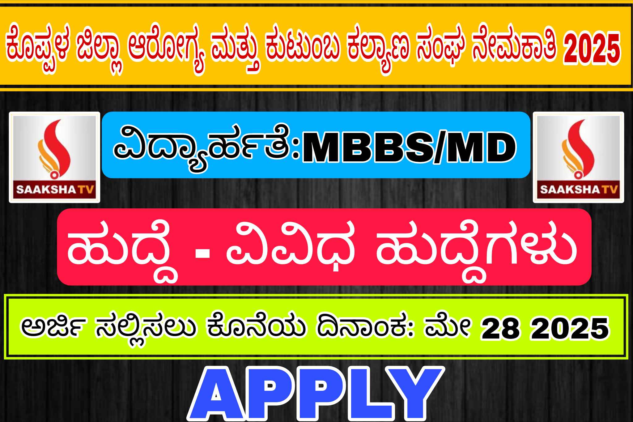 ಕೊಪ್ಪಳ ಜಿಲ್ಲಾ ಆರೋಗ್ಯ ಮತ್ತು ಕುಟುಂಬ ಕಲ್ಯಾಣ ಸಂಘ ನೇಮಕಾತಿ 2025