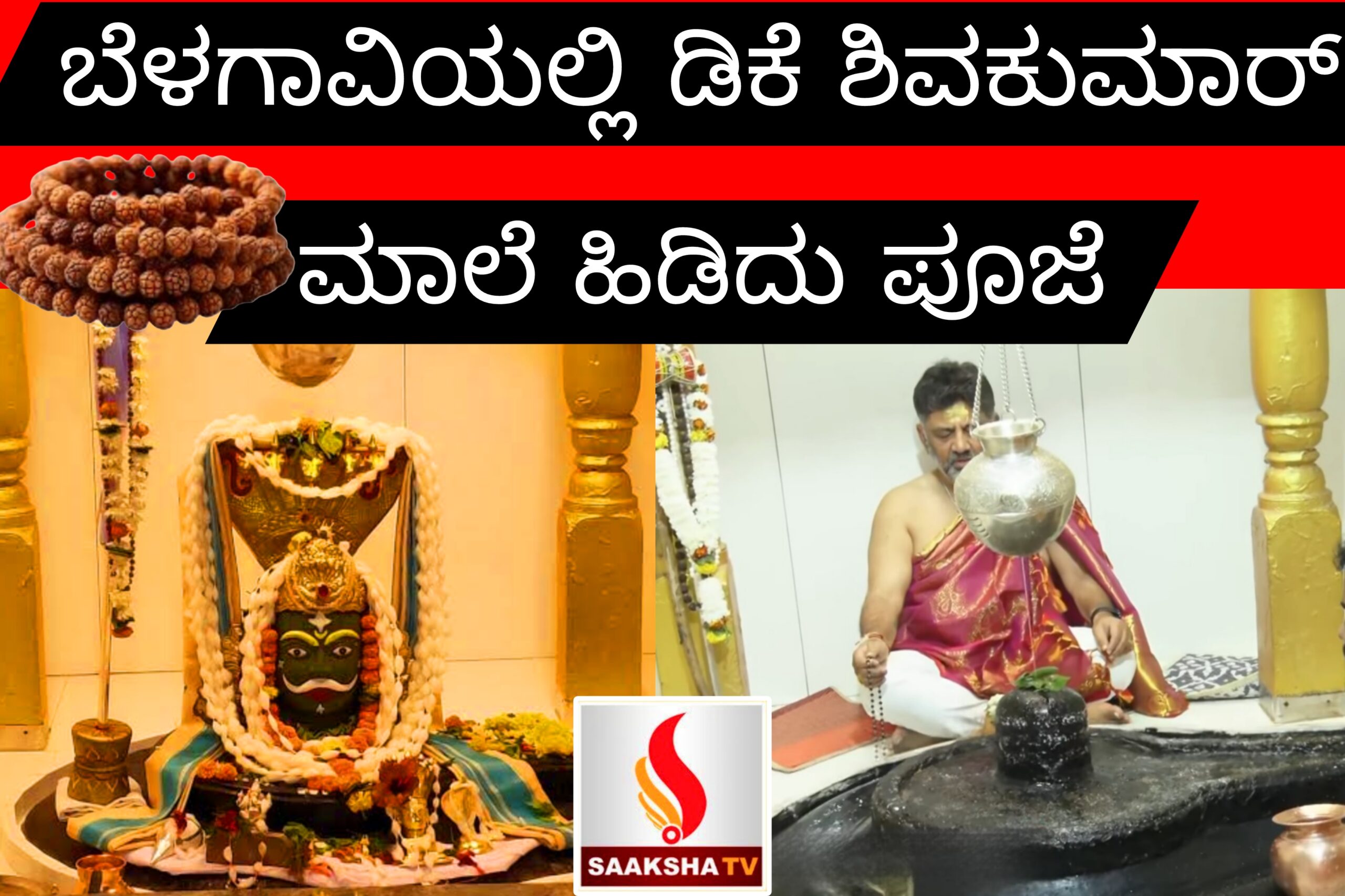ಬೆಳಗಾವಿಯಲ್ಲಿ ಡಿಕೆ ಶಿವಕುಮಾರ್ ರುದ್ರಾಕ್ಷಿಮಾಲೆ ಹಿಡಿದು ಪೂಜೆ..!
