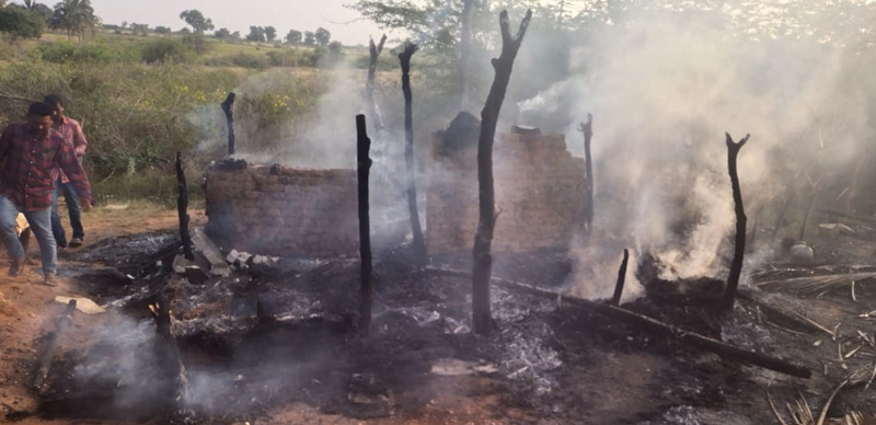 ಸಾವನ್ನಪ್ಪಿದ ವ್ಯಕ್ತಿ ಅಂತ್ಯ ಸಂಸ್ಕಾರಕ್ಕೆ ಹೋಗಿದ್ದರು. ಈ ಸಂದರ್ಭದಲ್ಲಿ ಕಾಲೋನಿಯಲ್ಲಿದ್ದ ಶಶಿ, ಕಲ್ಲೇಶ್ ಹಾಗೂ ಹನುಮಂತ ಎಂಬುವವರ ಮೂರು ಗುಡಿಸಲಿಗೆ ಆಕಸ್ಮಿಕವಾಗಿ ಬೆಂಕಿ ಬಿದ್ದಿದೆ. ಈ ಸಂದರ್ಭದಲ್ಲಿ ಆಕಸ್ಮಿಕವಾಗಿ ಬೆಂಕಿ ಬಿದ್ದಿತ್ತು. ಆಗ ಕಲ್ಲೇಶ್ ಮನೆಯಲ್ಲಿ 6 ವರ್ಷದ ಮಗು ಮಲಗಿತ್ತು. ಹನುಮಂತ ಕೂಡ ಮದ್ಯ ಸೇವಿಸಿ ಮನೆಯಲ್ಲಿಯೇ ಮಲಗಿದ್ದರು. ಬೆಂಕಿ ಹತ್ತುತ್ತಿದ್ದಂತೆ ಧಗಧಗ ಉರಿದಿದೆ. ಕೂಡಲೇ ಗ್ರಾಮದಲ್ಲಿದ್ದ ಮಹಿಳೆಯರು ತಮ್ಮ ಜೀವ ಲೆಕ್ಕಿಸದೆ ಮಗು ಹಾಗೂ ಮದ್ಯ ಸೇವಿಸಿ ಮಲಗಿದ್ದ ವ್ಯಕ್ತಿಯನ್ನು ರಕ್ಷಿಸಿದ್ದಾರೆ.