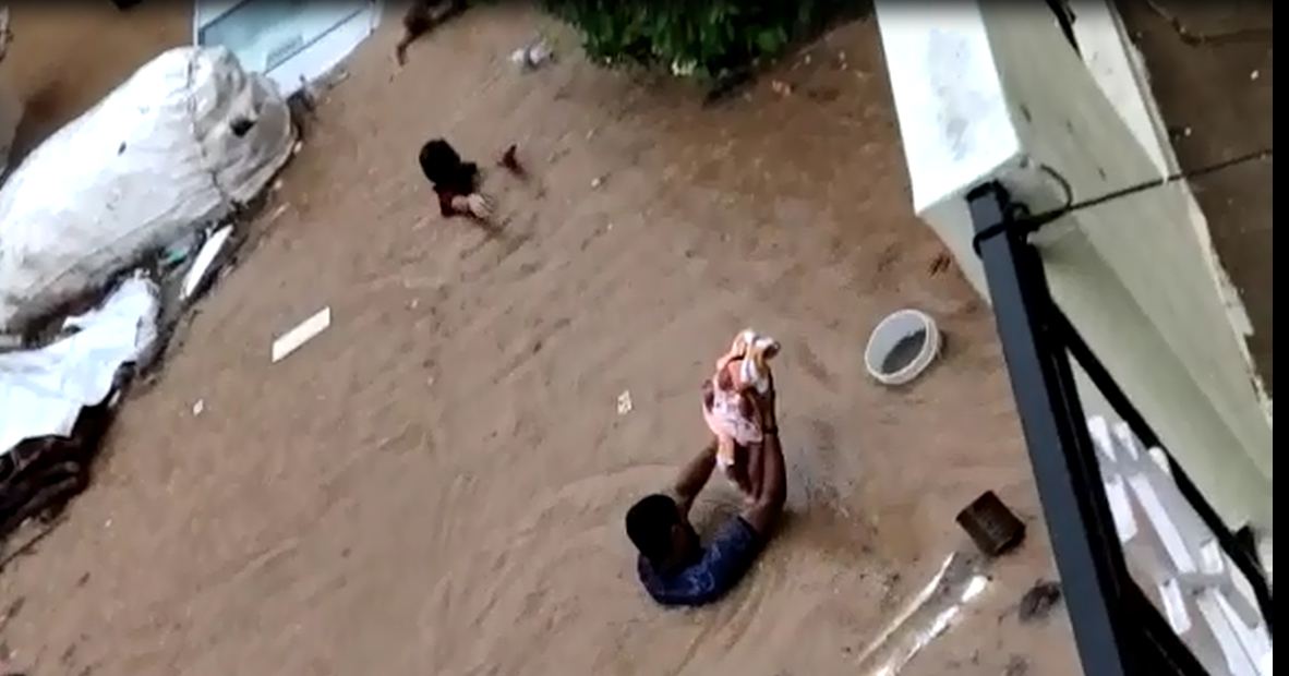 ಪ್ರಮೋದ್ ಲೇಔಟ್ನ ಮನೆಯೊಂದು ನೀರಿನಲ್ಲಿ ಸಂಪೂರ್ಣ ಮುಳುಗಿದ್ದು, ಮನೆಯಲ್ಲಿದ್ದ ಎರಡು ಹಸುಗೂಸುಗಳನ್ನು ಸ್ಥಳೀಯರು ಸುರಕ್ಷಿತವಾಗಿ ರಕ್ಷಣೆ ಮಾಡಿದ್ದಾರೆ. ಗಂಟಲು ಮಟ್ಟದವರೆಗಿನ ನೀರಿನಲ್ಲೇ ಹಸುಗೂಸನ್ನು ಬೇರೊಂದು ಮನೆಗೆ ಸ್ಥಳಾಂತರ ಮಾಡಿದ ವಿಡಿಯೋ ನೋಡಿದರೆ ಕರುಳು ಚುರುಕ್ ಎನ್ನುತ್ತದೆ.