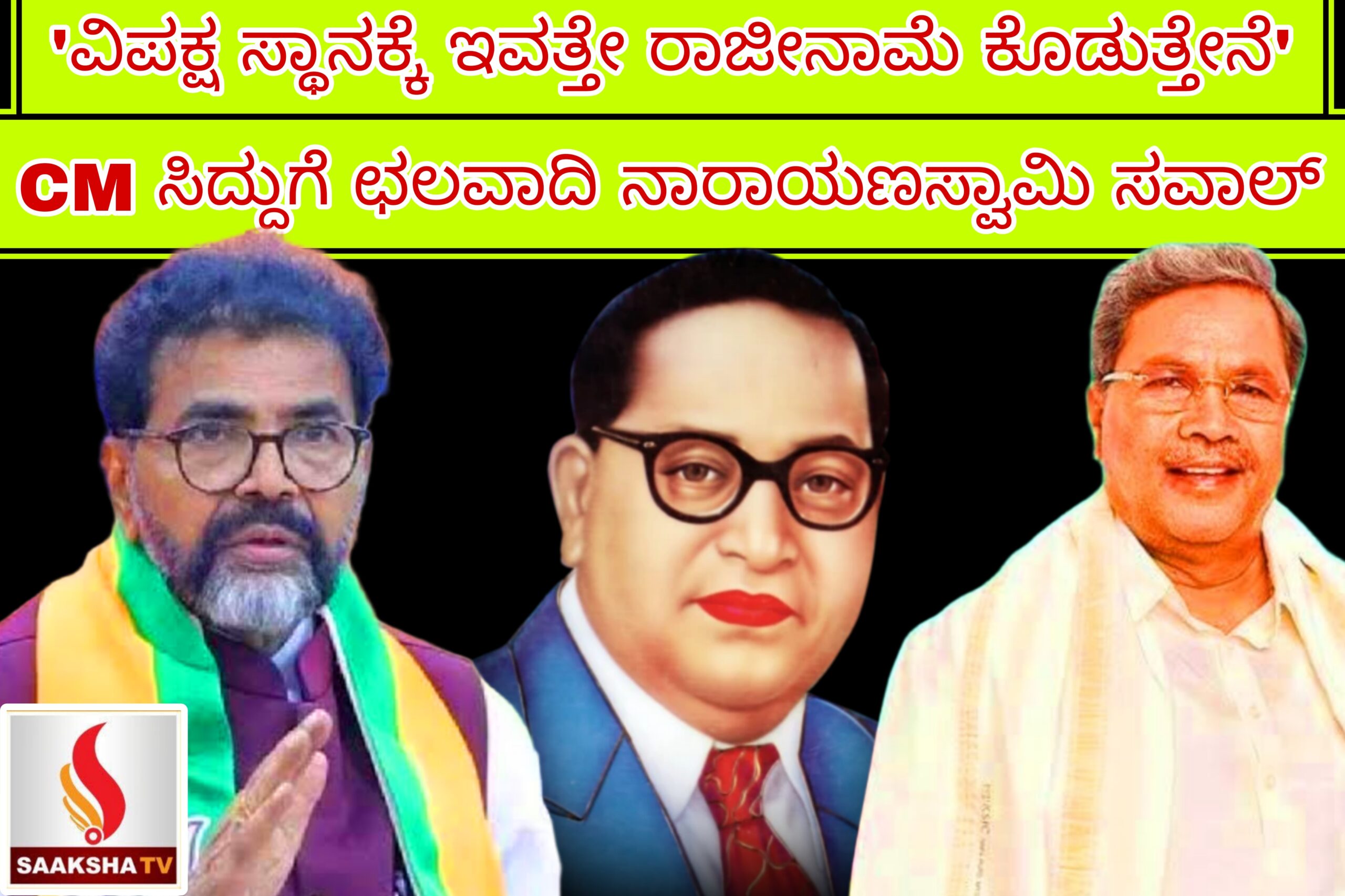 ವಿಧಾನಪರಿಷತ್ ವಿಪಕ್ಷ ನಾಯಕ ಛಲವಾದಿ ನಾರಾಯಣಸ್ವಾಮಿ ಅವರು ಮುಖ್ಯಮಂತ್ರಿ ಸಿದ್ದರಾಮಯ್ಯನವರಿಗೆ ಬಾಬಾ ಸಾಹೇಬ ಡಾ. ಬಿ.ಆರ್. ಅಂಬೇಡ್ಕರ್‌ರನ್ನು ಸಾವರ್ಕರ್ ಸೋಲಿಸಿದ್ದಾಗಿ ನೀಡಿದ ಹೇಳಿಕೆಯನ್ನು ಸಾಬೀತುಪಡಿಸಲು ಸವಾಲು ಹಾಕಿದ್ದಾರೆ. ಈ ಕುರಿತು ಅವರು ಬೆಳಗಾವಿಯಲ್ಲಿ ನಡೆದ ಜನಾಕ್ರೋಶ ಯಾತ್ರೆಯ ಸಭೆಯಲ್ಲಿ ಮಾತನಾಡಿದರು.