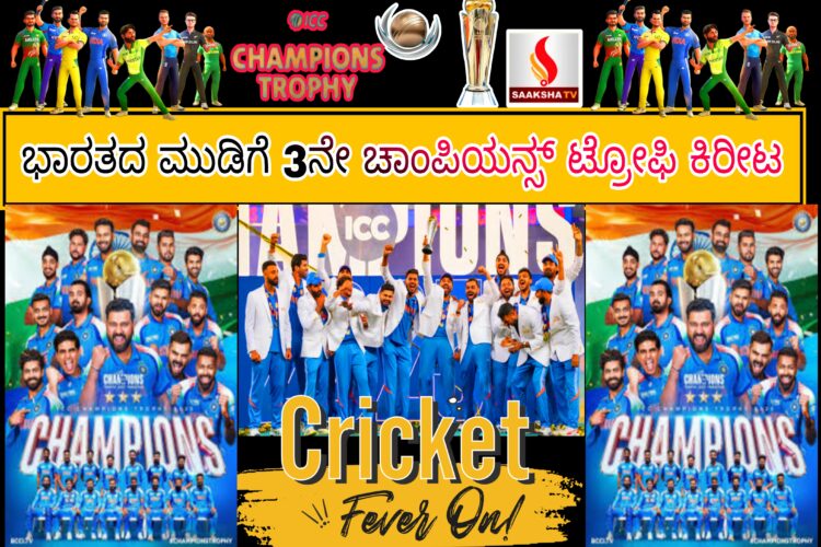 ಭಾರತವು ನ್ಯೂಜಿಲೆಂಡ್ ವಿರುದ್ಧ ನಾಲ್ಕು ವಿಕೆಟ್ಗಳಿಂದ ಜಯ ಸಾಧಿಸಿತು ಮತ್ತು ತನ್ನ ಮೂರನೇ ಚಾಂಪಿಯನ್ಸ್ ಟ್ರೋಫಿ ಕಿರೀಟವನ್ನು ಗೆದ್ದಿತು.