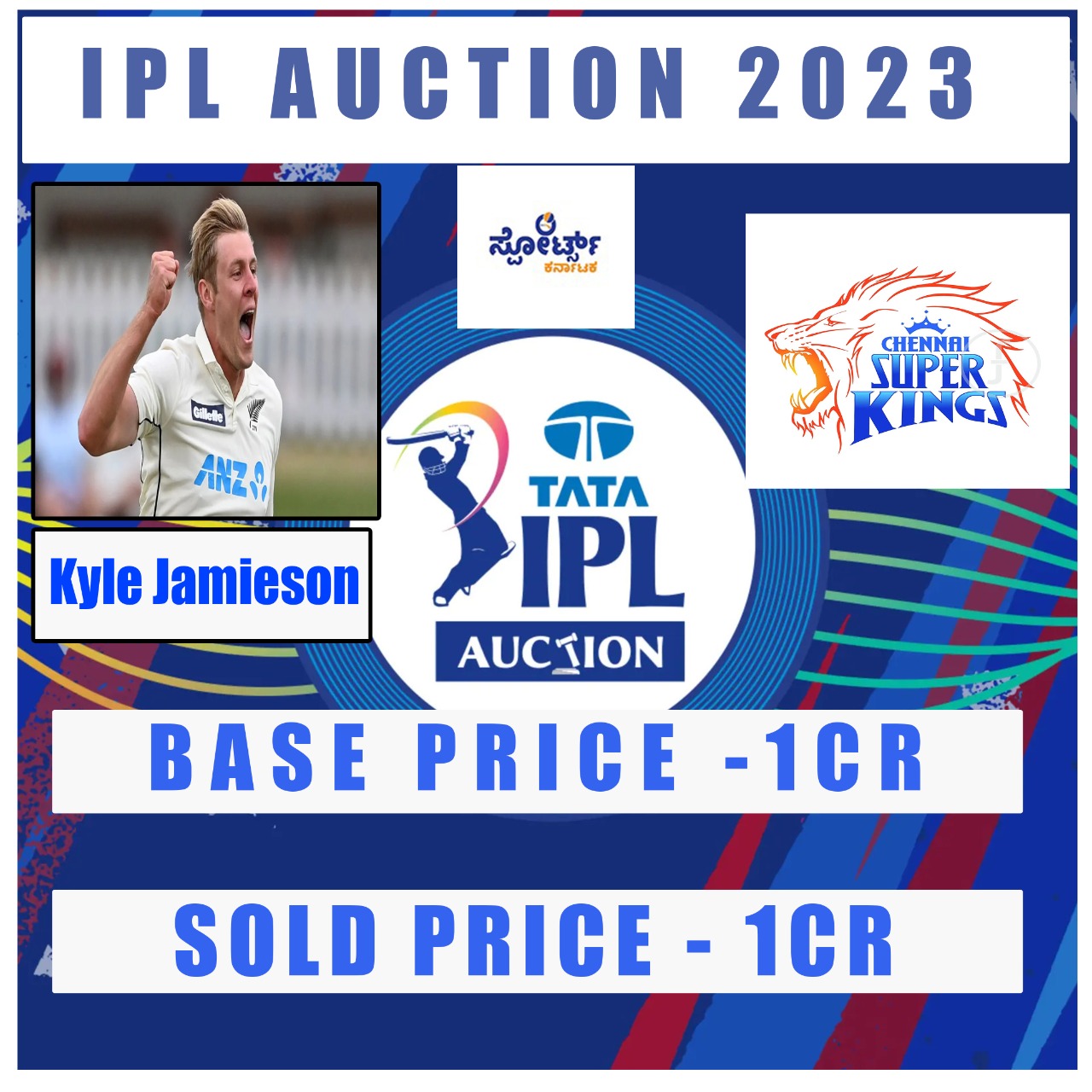 ಚೆನೈ ಸೂಪರ್ ಕಿಂಗ್ಸ್ ತಂಡ 1 ಕೋಟಿ ರೂ ಮೂಲ ಬೆಲೆಗೆ ಕೈಲ್ ಜೇಮಿಸನ್ ಅವರನ್ನ ಖರೀದಿ ಮಾಡಿದೆ. CSK ಗೆ ಇದು ಕ್ಲೋಸಿಂಗ್ ಬಿಡ್ ಆಗಿದೆ.