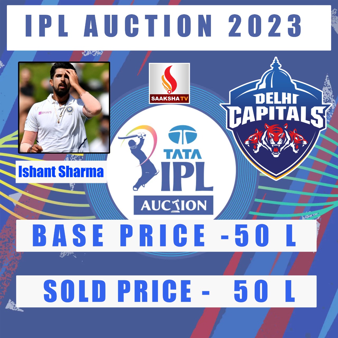 ಹಿರಿಯ ಮತ್ತು ಅನುಭವಿ ವೇಗಿ ಇಶಾಂತ್ ಶರ್ಮಾ ತವರಿನ ತಂಡಕ್ಕೆ ವಾಪಸ್ ಮರಳಿದ್ದು ಡೆಲ್ಲಿ ಕ್ಯಾಪಿಟಲ್ಸ್ ಪರ ಆಡಲಿದ್ದಾರೆ. ಮೂಲ ಬೆಲೆ 50 ಲಕ್ಷಕ್ಕೆ ಬಿಡ್ ಮಾಡಲಾಗಿದೆ.