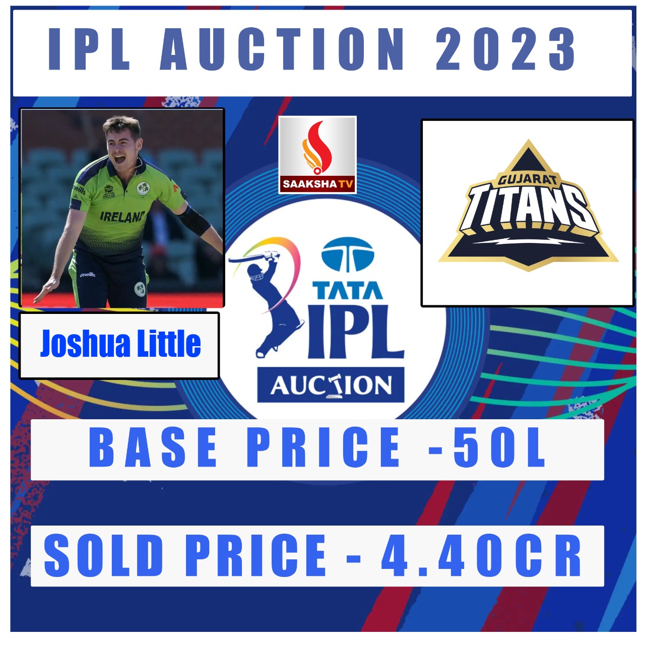 50 ಲಕ್ಷದ ಮೂಲ ಬೆಲೆಯನ್ನ ಹೊಂದಿದ್ದ ಐರ್ಲೆಂಡ್ನ ಜೋಶುವಾ ಲಿಟಲ್ ಅವರನ್ನ ಗುಜರಾತ್ ಟೈಟಾನ್ಸ್ 4 ಕೋಟಿ ಗೆ ಕರೆದುಕೊಂಡಿದೆ.