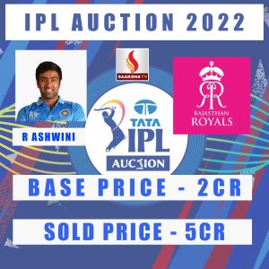 IPL ಮೆಗಾ ಹರಾಜು 2022 : ರಾಜಸ್ಥಾನ್ ರಾಯಲ್ಸ್ ಪಾಲಾದ ಅಶ್ವಿನ್