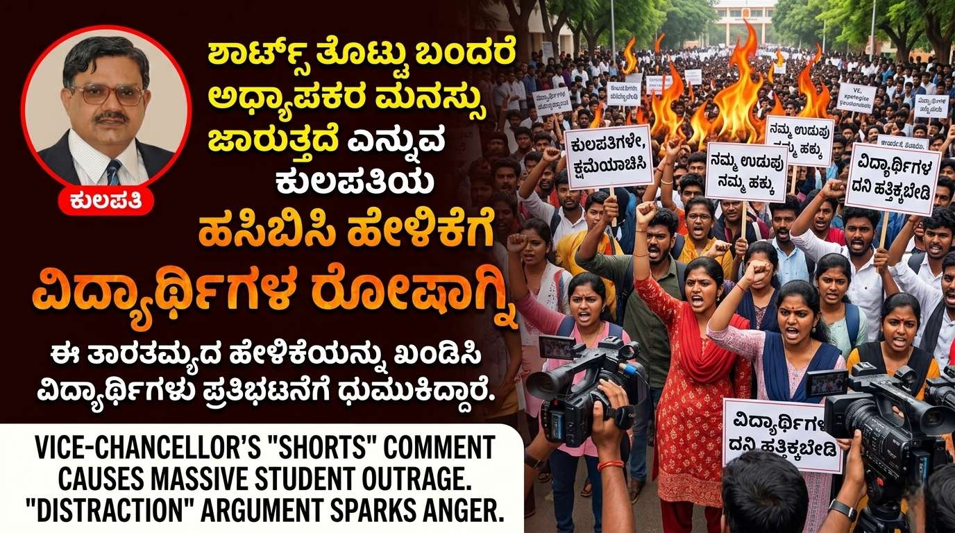 ಶಾರ್ಟ್ಸ್ ತೊಟ್ಟು ಬಂದರೆ ಅಧ್ಯಾಪಕರ ಮನಸ್ಸು ಜಾರುತ್ತದೆ ಎನ್ನುವ ಕುಲಪತಿಯ ಹಸಿಬಿಸಿ ಹೇಳಿಕೆಗೆ ವಿದ್ಯಾರ್ಥಿಗಳ ರೋಷಾಗ್ನಿ