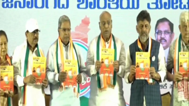 AICC ಅಧ್ಯಕ್ಷ ಮಲ್ಲಿಕಾರ್ಜುನ ಖರ್ಗೆ ಪ್ರಣಾಳಿಕೆ ಬಿಡುಗಡೆಗೊಳಿಸಿದರು. ಕಾರ್ಯಕ್ರಮದಲ್ಲಿ ಎಐಸಿಸಿ ಪ್ರಧಾನ ಕಾರ್ಯದರ್ಶಿ ರಣದೀಪ್ ಸಿಂಗ್ ಸುರ್ಜೆವಾಲ, ಕೆಪಿಸಿಸಿ ಅಧ್ಯಕ್ಷ ಡಿ ಕೆ ಶಿವಕುಮಾರ್,ವಿಧಾನಸಭೆ ವಿರೋಧ ಪಕ್ಷದ ನಾಯಕ ಸಿದ್ದರಾಮಯ್ಯ,ವಿಧಾನ ಪರಿಷತ್ ವಿರೋಧ ಪಕ್ಷದ ನಾಯಕ ಬಿ ಕೆ ಹರಿಪ್ರಸಾದ್, ಪ್ರಣಾಳಿಕೆ ಸಮಿತಿ ಅಧ್ಯಕ್ಷ ಡಾ ಜಿ ಪರಮೇಶ್ವರ್ ಸೇರಿ ಹಲವರು ಭಾಗಿಯಾಗಿದ್ದರು.