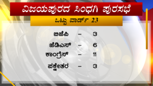 ವಿಜಯಪುರದ ಸಿಂದಗಿ ಪುರಸಭೆ ಚುನಾವಣೆಯಲ್ಲಿ 23 ಸ್ಥಾನಗಳ ಪೈಕಿ ಕಾಂಗ್ರೆಸ್ 11 ಸ್ಥಾನಗಳಲ್ಲಿ ಗೆಲುವು ಸಾಧಿಸಿದ್ದು, ಜೆಡಿಎಸ್ ಕೇವಲ 6 ಸ್ಥಾನಗಳು ಪಡೆದುಕೊಂಡಿವೆ.