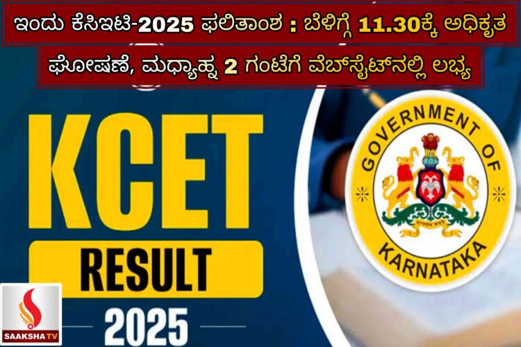 ಇಂದು ಕೆಸಿಇಟಿ-2025 ಫಲಿತಾಂಶ : ಬೆಳಿಗ್ಗೆ 11.30ಕ್ಕೆ ಅಧಿಕೃತ ಘೋಷಣೆ, ಮಧ್ಯಾಹ್ನ 2 ಗಂಟೆಗೆ ವೆಬ್‌ಸೈಟ್‌ನಲ್ಲಿ ಲಭ್ಯ
