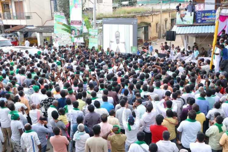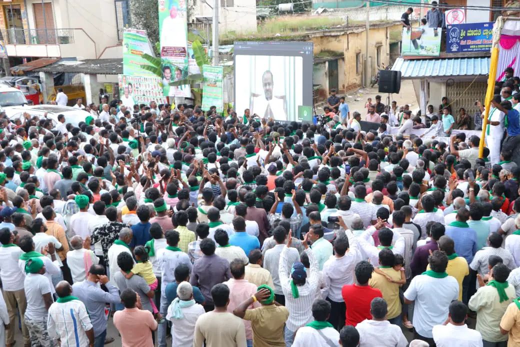 “ನನ್ನನ್ನು ಬೆಳೆಸಿದ ರೈತ ಸಮುದಾಯಕ್ಕೆ ನನ್ನ ಕೊನೆ ಉಸಿರು ಇರುವವರೆಗೂ ಅನ್ಯಾಯವಾಗಲು ಬಿಡುವುದಿಲ್ಲ. ನಿಮ್ಮ ಒಂದಿಂಚು ಭೂಮಿಯನ್ನೂ ಯಾರೂ ಕಿತ್ತುಕೊಳ್ಳಲು ಸಾಧ್ಯವಿಲ್ಲ. ನನ್ನ ಮಗ ನಿಖಿಲ್ ನಿಮ್ಮ ಪರವಾಗಿ ದನಿ ಎತ್ತಿದ್ದಾನೆ, ಅವನಿಗೆ ನನ್ನ ಸಂಪೂರ್ಣ ಬೆಂಬಲವಿದೆ. ಒಂದುವೇಳೆ ಬೆಂಗಳೂರಿಗೆ ಪಾದಯಾತ್ರೆ ಮಾಡುವ ಸಂದರ್ಭ ಬಂದರೆ, ನನ್ನ ಆರೋಗ್ಯವನ್ನೂ ಲೆಕ್ಕಿಸದೆ ನಾನೇ ಮುಂದೆ ನಿಂತು ನಿಮ್ಮ ಜೊತೆ ಹೆಜ್ಜೆ ಹಾಕುತ್ತೇನೆ. ನನ್ನ ಮೇಲೆ ನಂಬಿಕೆ ಇಡಿ,” ಎಂದು ರೈತರಿಗೆ ಧೈರ್ಯ ತುಂಬಿದರು.