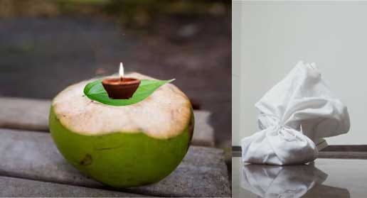ನೀವು ಬಲಿಯದ ನೀರನ್ನು ಖರೀದಿಸಬೇಕು. ಖರೀದಿಯ ಸಮಯದಲ್ಲಿ ನೀವು ತಾಜಾ ನೀರನ್ನು ಖರೀದಿಸಬಹುದು. ಮನೆಗೆ ಬಂದು ಪೂಜಾ ಕೋಣೆಯಲ್ಲಿ ತಂಬಂ ಹಾಕಿ. ಅದರ ಮಧ್ಯದಲ್ಲಿ ಹುಣಸೆಹಣ್ಣು ಹಾಕಿ. ಈಗ ನೀವು ಖರೀದಿಸಿದ ಎಳನೀರನ್ನು ಬಾಚಿಕೊಳ್ಳಬೇಕು ಮತ್ತು ಅದರಲ್ಲಿ ಸ್ವಲ್ಪ ನೀರನ್ನು ಸುರಿಯಬೇಕು ಮತ್ತು ಈ ಎಳನೀರನ್ನು ಅನ್ನದ ಮೇಲೆ ಇಡಬೇಕು. ನವದನಿಯಂ ಅನ್ನು ಸ್ಥಳೀಯ ಔಷಧಿ ಅಂಗಡಿಯಲ್ಲಿ ಖರೀದಿಸಿ ಎಳನೀರಿಗೆ ಹಾಕಬೇಕು. ನಂತರ ವೀಳ್ಯದೆಲೆಯಿಂದ ರಂಧ್ರವನ್ನು ಮುಚ್ಚಿ.