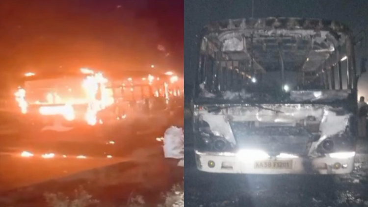 ಮಹಾರಾಷ್ಟ್ರದ ಉಮ್ಮರ್ಗಾದ ತುರುರಿ ಬಳಿ ಬಸ್ ಗೆ ದುಷ್ಕರ್ಮಿಗಳು ಬೆಂಕಿ ಹಚ್ಚಿದ್ದಾರೆ. ಆದರೆ, ಘಟನೆಯಲ್ಲಿ ಚಾಲಕ, ಕಂಡಕ್ಟರ್ ಸೇರಿದಂತೆ ಬಸ್ ನಲ್ಲಿದ್ದ 46 ಪ್ರಯಾಣಿಕರು ಪ್ರಾಣಾಪಾಯದಿಂದ ಪಾರಾಗಿದ್ದಾರೆ.
