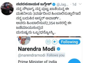 ಇನ್ನು ಟ್ವಿಟ್ಟರ್ ನಲ್ಲಿ ಪ್ರಧಾನಿಗಳು 2,354 ಜನರನ್ನ ಫಾಲೋ ಮಾಡುತ್ತಿದ್ದು, ಅದರಲ್ಲಿ ನವರಸ ನಾಯಕ ಜಗ್ಗೇಶ್ ಕೂಡ ಒಬ್ಬರು.