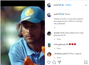ಆಗಸ್ಟ್ 14ರಂದು ಧೋನಿ ಸಿಎಸ್ಕೆ ಕ್ಯಾಂಪ್ ಸೇರಿಕೊಂಡಿದ್ದರು. ಆಗಸ್ಟ್ 15ರಂದು ಸಿಎಸ್ಕೆ ತಂಡ ತರಬೇತಿ ಶಿಬಿರ ನಡೆಸಿತ್ತು. ಸಂಜೆಯ ತರಬೇತಿ ಮುಗಿಸಿದ್ದ ತಕ್ಷಣವೇ ಧೋನಿ ಕ್ರಿಕೆಟ್ ಬದುಕಿಗೆ ವಿದಾಯ ಹೇಳುವ ನಿರ್ಧಾರ ತೆಗೆದುಕೊಂಡ್ರು. ಇನ್ ಸ್ಟಾಗ್ರಾಮ್ ನಲ್ಲಿ ವಿದಾಯದ ಪದಗಳನ್ನು ಬರೆದು ಮುಗಿಸಿದ್ರು. ಇದು ಕೂಡ ಅಚ್ಚರಿಯ ನಿರ್ಧಾರ. ಯಾಕಂದ್ರೆ ಧೋನಿ ಮನಸ್ಸು ಮಾಡಿದ್ರೆ 2021ರ ಟಿ-ಟ್ವೆಂಟಿ ವಿಶ್ವಕಪ್ ಆಡಬಹುದಿತ್ತು. ಆದ್ರೆ ತನ್ನಿಂದ ಯುವ ಆಟಗಾರರಿಗೆ ತೊಂದರೆಯಾಗಬಾರದು ಅನ್ನೋ ನಿರ್ಧಾರದಿಂದಲೇ ಧೋನಿ ತನ್ನ ವರ್ಣ ರಂಜಿತ ಕ್ರಿಕೆಟ್ ಬದುಕಿಗೆ ವಿದಾಯ ಹೇಳಿದ್ದಾರೆ.