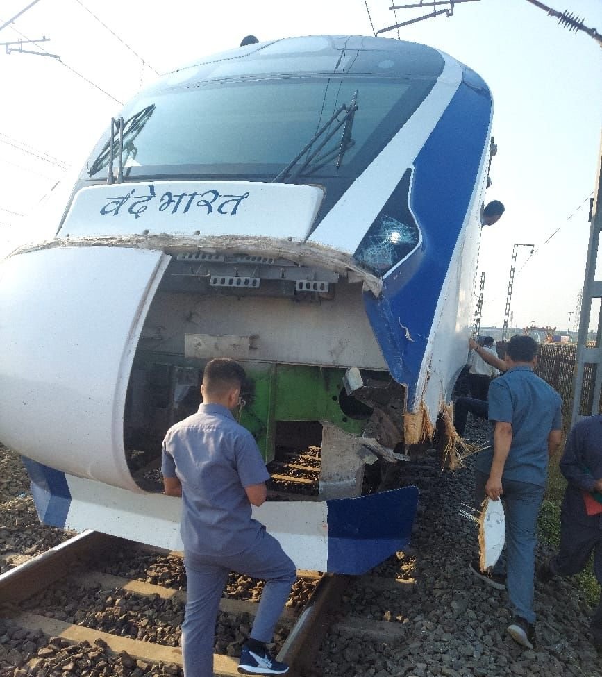 Mumbai-Ahmedabad Vande Bharat Express damaged again, hits cattle on route