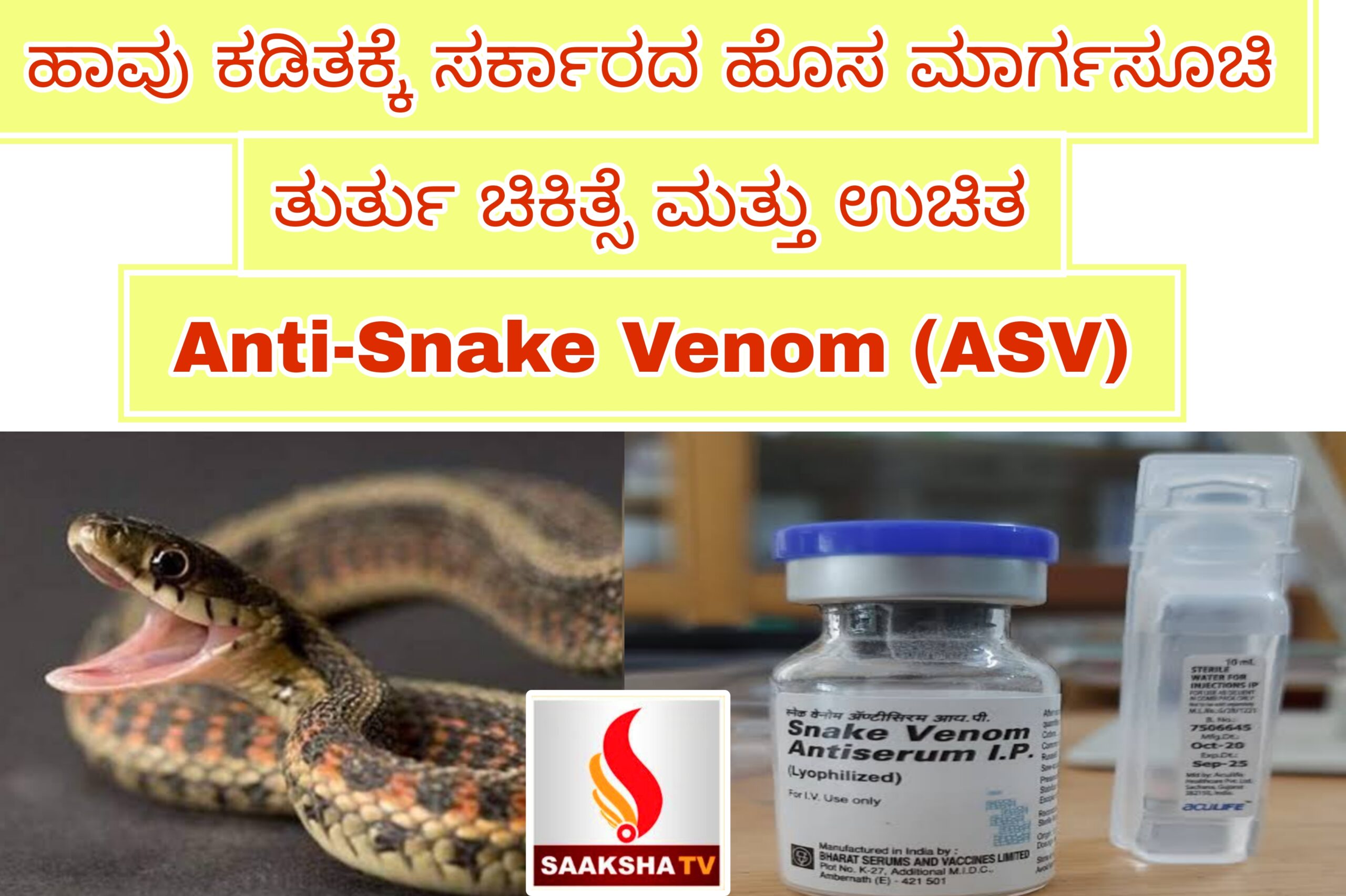 Anti-Snake Venom ಉಚಿತವಾಗಿ ಲಭ್ಯ: