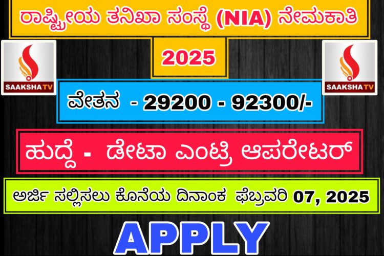 NIA Recruitment 2025 – ರಾಷ್ಟ್ರೀಯ ತನಿಖಾ ಸಂಸ್ಥೆ (NIA) ಇಲಾಖೆಯಿಂದ ಹೊಸ ನೇಮಕಾತಿ ಅಧಿಸೂಚನೆ ಹೊರಡಿಸಲಾಗಿದೆ, ಆಸಕ್ತ ಮತ್ತು ಅರ್ಹ ಅಭ್ಯರ್ಥಿಗಳು ಸದರಿ ಹುದ್ದೆಗಳಿಗೆ ಅರ್ಜಿ ಸಲ್ಲಿಸಲು ನಿಗದಿಪಡಿಸಿದ ದಿನಾಂಕದೊಳಗೆ ಅರ್ಜಿ ಸಲ್ಲಿಸಿ