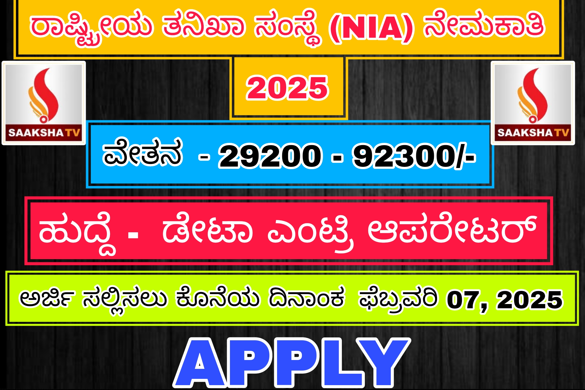 ಅರ್ಜಿ ಸಲ್ಲಿಸಲು ಕೊನೆಯ ದಿನಾಂಕ 07-ಫೆಬ್ರವರಿ-2025