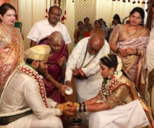 ಬೆಳಗ್ಗೆ 9.45ಶುಭಮುಹೂರ್ತದಲ್ಲಿ ರೇವತಿಗೆ ನಿಖಿಲ್ ಮಾಂಗಲ್ಯ ಧಾರಣೆ ಮಾಡಿದರು. ಲಾಕ್ ಡೌನ್ ಹಿನ್ನೆಲೆಯಲ್ಲಿ ನಿಖಿಲ್ ಕುಟುಂಬದವರು ಹಾಗೂ ರೇವತಿ ಕುಟುಂಬದವರು ಮಾತ್ರ ಮದುವೆಯಲ್ಲಿ ಭಾಗಿಯಾಗಿದ್ದರು.