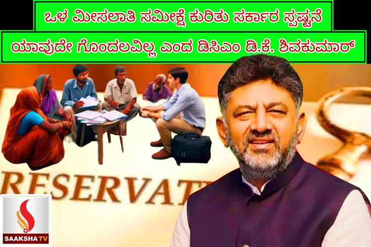 ಒಳ ಮೀಸಲಾತಿ ಸಮೀಕ್ಷೆ ಕುರಿತು ಸರ್ಕಾರ ಸ್ಪಷ್ಟನೆ – ಯಾವುದೇ ಗೊಂದಲವಿಲ್ಲ ಎಂದ ಡಿಸಿಎಂ ಡಿ.ಕೆ. ಶಿವಕುಮಾರ್