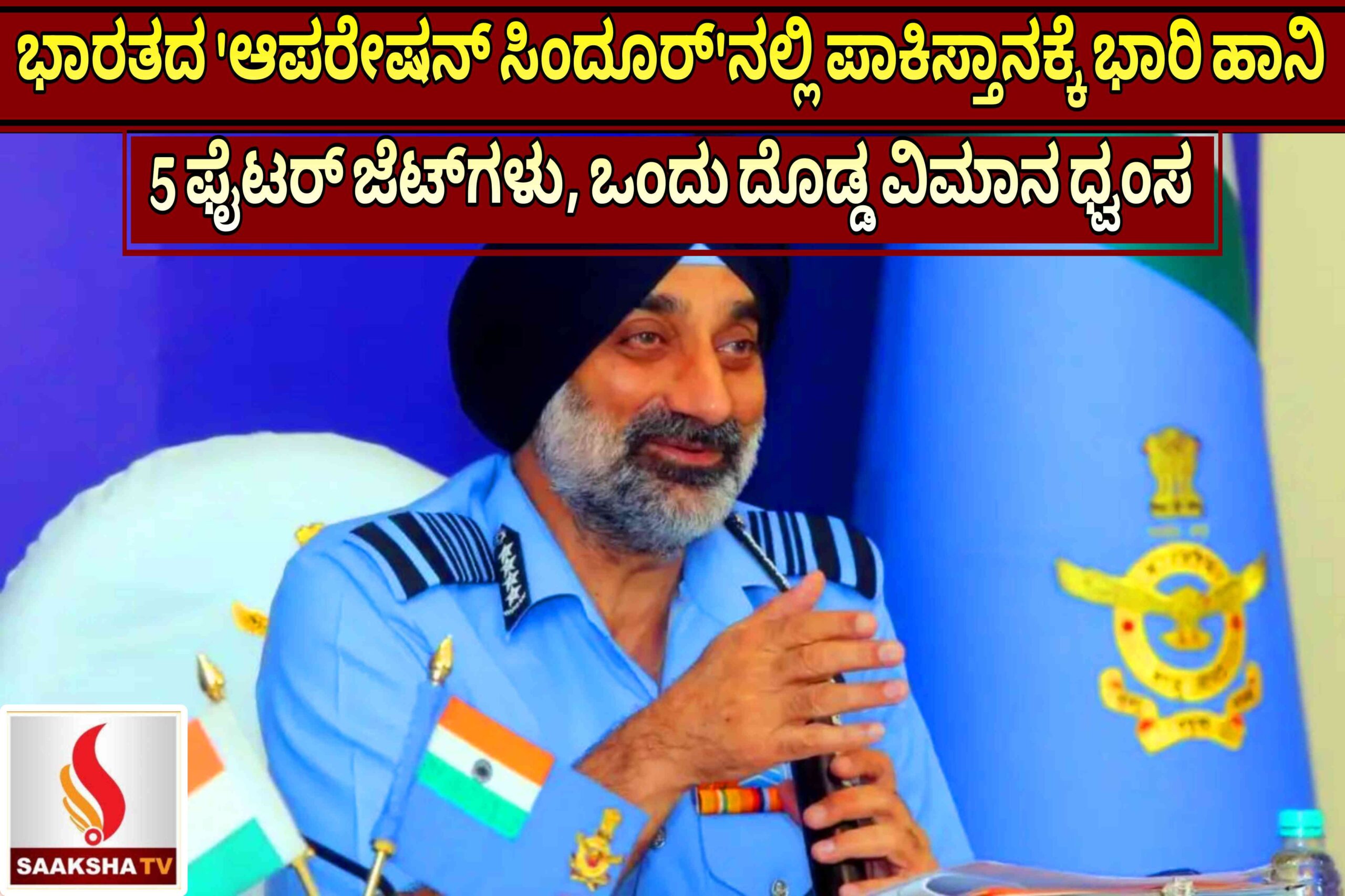 ಭಾರತೀಯ ವಾಯುಪಡೆಯ ಮುಖ್ಯಸ್ಥರು ಆಪರೇಷನ್ ಸಿಂದೂರ್ ಕಾರ್ಯಾಚರಣೆಯ ಕುರಿತು ಮಹತ್ವದ ಮಾಹಿತಿ ಬಿಡುಗಡೆ ಮಾಡಿದ್ದಾರೆ. ಈ ಕಾರ್ಯಾಚರಣೆಯಲ್ಲಿ ಪಾಕಿಸ್ತಾನದ ವಾಯುಪಡೆಗೆ ಭಾರಿ ನಷ್ಟ ಉಂಟಾಗಿದೆ ಎಂದು ಅವರು ಅಧಿಕೃತವಾಗಿ ದೃಢಪಡಿಸಿದ್ದಾರೆ. ಭಾರತೀಯ ವಾಯುಪಡೆ (IAF) ಈ ಕಾರ್ಯಾಚರಣೆಯನ್ನು ಮೇ 7 ರಂದು ನಡೆಸಿದ್ದು, ಇದರಲ್ಲಿ ಕನಿಷ್ಠ 5 ಪಾಕಿಸ್ತಾನಿ ಫೈಟರ್ ಜೆಟ್ಗಳನ್ನು ಮತ್ತು ಒಂದು ದೊಡ್ಡ ಯುದ್ಧ ವಿಮಾನವನ್ನು ಹೊಡೆದುರುಳಿಸಲಾಗಿದೆ ಎಂದು ಹೇಳಿದೆ. ಈ ಕಾರ್ಯಾಚರಣೆಯ ಬಗ್ಗೆ ಭಾರತವು ಬಹಿರಂಗವಾಗಿ ಮಾಹಿತಿ ನೀಡಿರುವುದು ಇದೇ ಮೊದಲ ಬಾರಿಯಾಗಿದೆ.