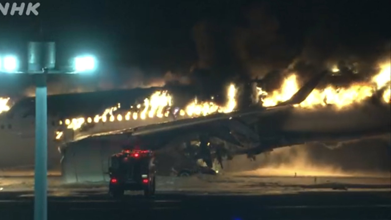 JAL 516 ವಿಮಾನ ಹೊಕ್ಕೈಡೊದಿಂದ ಟೇಕಾಫ್‌ ಆದ ವಿಮಾನ ಟೋಕಿಯೋದಲ್ಲಿನ ಹನೆಡಾ ವಿಮಾನ ನಿಲ್ದಾಣದ ರನ್‌ವೇಯಲ್ಲಿ ಲ್ಯಾಂಡ್‌ ಆಗುತ್ತಿದ್ದಾಗ ಹೊತ್ತಿ ಉರಿದಿದೆ. ನಂತರ ಬೆಂಕಿ ಹೊತ್ತಿಕೊಂಡಿರುವ ದೃಶ್ಯ ಸಾಮಾಜಿಕ ಜಾಲತಾಣದಲ್ಲಿ ವೈರಲ್ ಆಗುತ್ತಿವೆ. ಹೊಗೆ ತುಂಬಿದ ಕ್ಯಾಬಿನ್‌ನೊಳಗೆ ಪ್ರಯಾಣಿಕರು ಅಳುತ್ತಿರುವುದು ಹಾಗೂ ಕೆಮ್ಮುತ್ತಲೇ ವಿಮಾನದಿಂದ ಹೊರಗೆ ಓಡಿ ಬರುತ್ತಿರುವುದನ್ನು ಕೂಡ ನೋಡಬಹುದು.