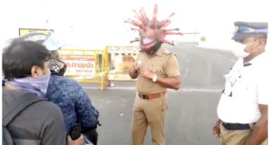 ಹೌದು..! ದೇಶದಾದ್ಯಂತ  ಲಾಕ್ ಡೌನ್ ಇದ್ದರೂ ಜನರು ಸುಖಾಸುಮ್ಮನೆ ಓಡಾಡುತ್ತಲೇ ಇದ್ದಾರೆ. ಇದನ್ನು ತಡೆಯುವ ಹಾಗೂ ಕೊರೊನಾ ಹರಡುವ ಬಗ್ಗೆ ಜಾಗೃತಿ ನೀಡುವ ಉದ್ದೇಶದಿಂದ ಚೆನ್ನೈ ಪೊಲೀಸರು ಕೊರೊನಾ ಹೆಲ್ಮೆಟ್ ಧರಿಸಿ ಜನರಿಗೆ ಮಾಹಿತಿ ನೀಡುತ್ತಿದ್ದಾರೆ.
