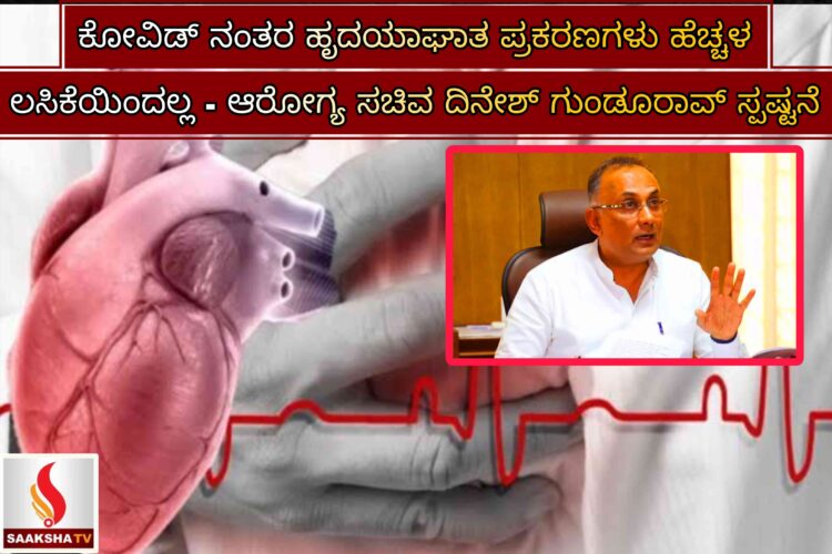 ರಾಜ್ಯದಲ್ಲಿ ಇತ್ತೀಚೆಗೆ ಹೃದಯಾಘಾತದಿಂದ ಸಂಭವಿಸುತ್ತಿರುವ ಸಾವುಗಳು ಸಾರ್ವಜನಿಕರಲ್ಲಿ ಆತಂಕ ಮೂಡಿಸಿರುವ ಹಿನ್ನೆಲೆಯಲ್ಲಿ, ಆರೋಗ್ಯ ಇಲಾಖೆ ಸಚಿವ ದಿನೇಶ್ ಗುಂಡೂರಾವ್ ಅವರು ಇಂದು ಆರೋಗ್ಯ ಇಲಾಖೆ ಅಧಿಕಾರಿಗಳೊಂದಿಗೆ ಸಭೆ ನಡೆಸಿದ ಬಳಿಕ ಮಹತ್ವದ ಮಾಹಿತಿ ಹಂಚಿಕೊಂಡಿದ್ದಾರೆ.