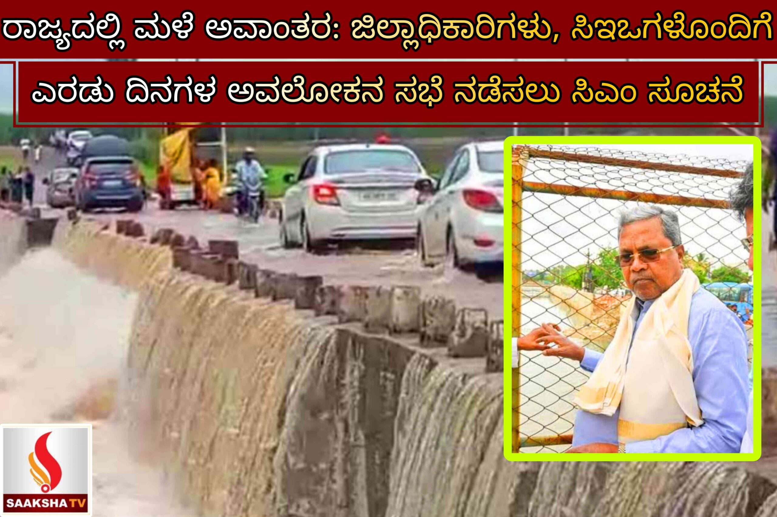 ರಾಜ್ಯದ ಹಲವು ಭಾಗಗಳಲ್ಲಿ ಕಳೆದ ಕೆಲ ದಿನಗಳಿಂದ ನಿರಂತರವಾಗಿ ಸುರಿಯುತ್ತಿರುವ ಭಾರೀ ಮಳೆಯಿಂದಾಗಿ ಜನಜೀವನದಲ್ಲಿ ವ್ಯತ್ಯಯ ಉಂಟಾಗಿದ್ದು, ಕೆಲವು ಜಿಲ್ಲೆಗಳಲ್ಲಿ ಪ್ರವಾಹದ ಪರಿಸ್ಥಿತಿ ನಿರ್ಮಾಣವಾಗಿದೆ. ಈ ಹಿನ್ನೆಲೆಯಲ್ಲಿ ಸಿಎಂ ಸಿದ್ದರಾಮಯ್ಯ ಅವರು ಮಳೆ ಹಾಗೂ ನೈಸರ್ಗಿಕ ಆಪತ್ತುಗಳಿಂದ ಉಂಟಾಗಿರುವ ಹಾನಿಯ ಬಗ್ಗೆ ಸಮಗ್ರ ಅವಲೋಕನ ನಡೆಸಲು ಮುಂದಾಗಿದ್ದಾರೆ.