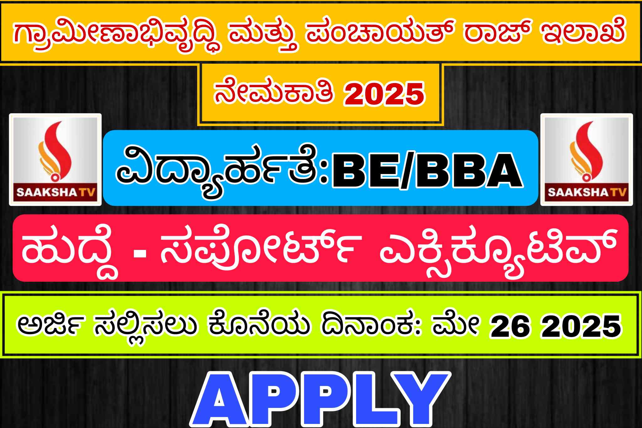 ಗ್ರಾಮೀಣಾಭಿವೃದ್ಧಿ ಮತ್ತು ಪಂಚಾಯತ್ ರಾಜ್ ಇಲಾಖೆಯ ಇ-ಆಡಳಿತ ಶಾಖೆಯ ರಾಜ್ಯ ಕಛೇರಿಗೆ ಅಗತ್ಯ ಇರುವ ಸಪೋರ್ಟ್ ಎಕ್ಸಿಕ್ಯೂಟಿವ್ ಹುದ್ದೆಯ ಭರ್ತಿಗೆ ಅರ್ಹ ಹಾಗೂ ಆಸಕ್ತ ಅಭ್ಯರ್ಥಿಗಳಿಂದ ಅರ್ಜಿಗಳನ್ನು ಆಹ್ವಾನಿಸಲಾಗಿದೆ.