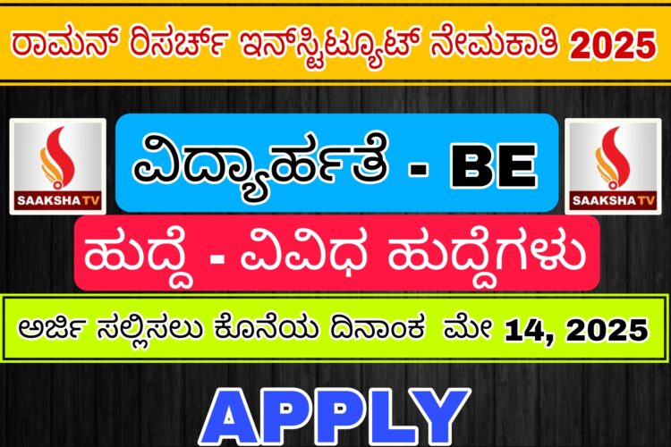 ರಾಮನ್‌ ರಿಸರ್ಚ್ ಇನ್‌ಸ್ಟಿಟ್ಯೂಟ್ ನೇಮಕಾತಿ 2025