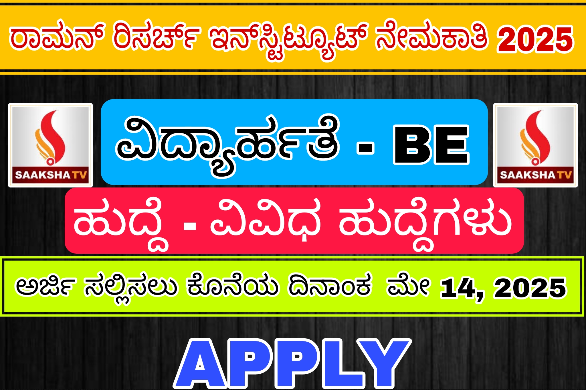 ಅರ್ಜಿ ಸಲ್ಲಿಸಲು ಕೊನೆಯ ದಿನಾಂಕ: 14 ಮೇ 2025