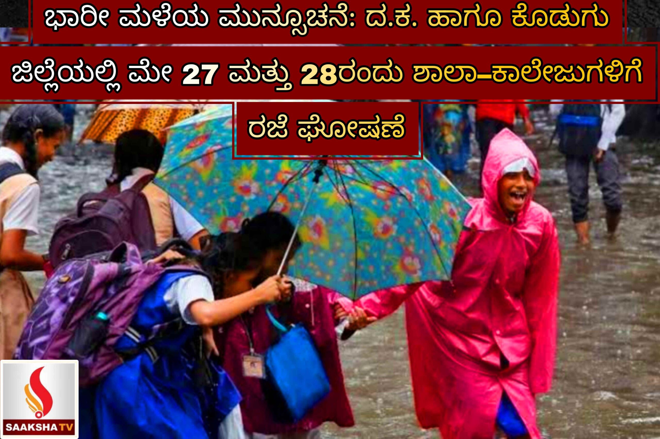 ಅದೇ ರೀತಿಯಾಗಿ, ಕೊಡಗು ಜಿಲ್ಲೆಯಲ್ಲಿಯೂ ಮೇ 27ರಂದು ಭಾರೀ ಮಳೆಯ ಮುನ್ಸೂಚನೆಯ ಹಿನ್ನೆಲೆಯಲ್ಲಿ ಜಿಲ್ಲೆಯ ಎಲ್ಲಾ ಶಾಲಾ ಕಾಲೇಜುಗಳಿಗೆ ಜಿಲ್ಲಾಧಿಕಾರಿಗಳಿಂದ ರಜೆ ಘೋಷಿಸಲಾಗಿದೆ. ಇಲ್ಲಿಯೂ ಅಂಗನವಾಡಿ ಕೇಂದ್ರಗಳಿಗೆ ಸಹ ರಜೆ ನೀಡಲಾಗಿದೆ.